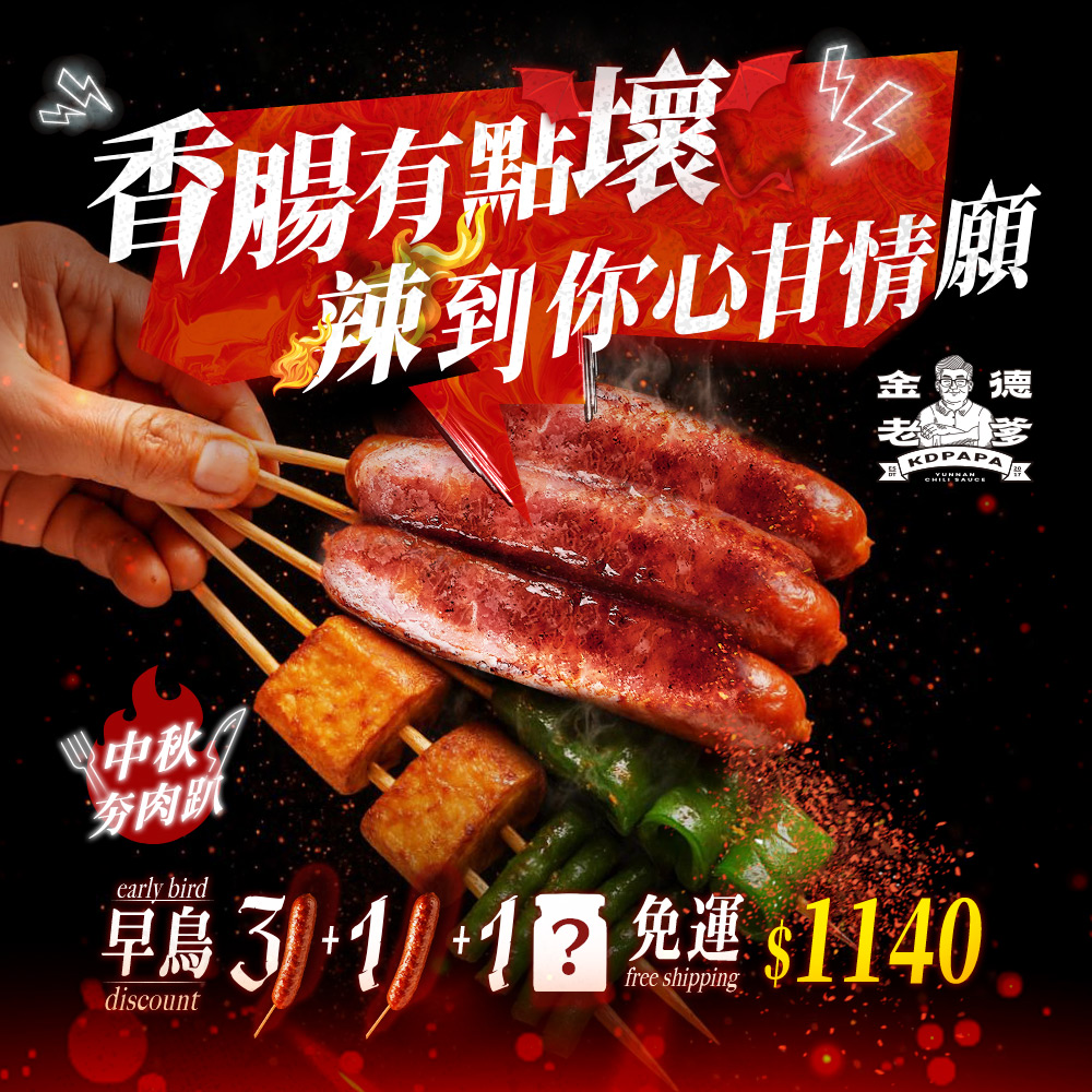 中秋早鳥限定|麻辣香腸買三送一,再送辣味小菜